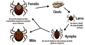Dans la majorité des cas, durant son cycle de vie, une tique change d'hôte à chacun de ces stades